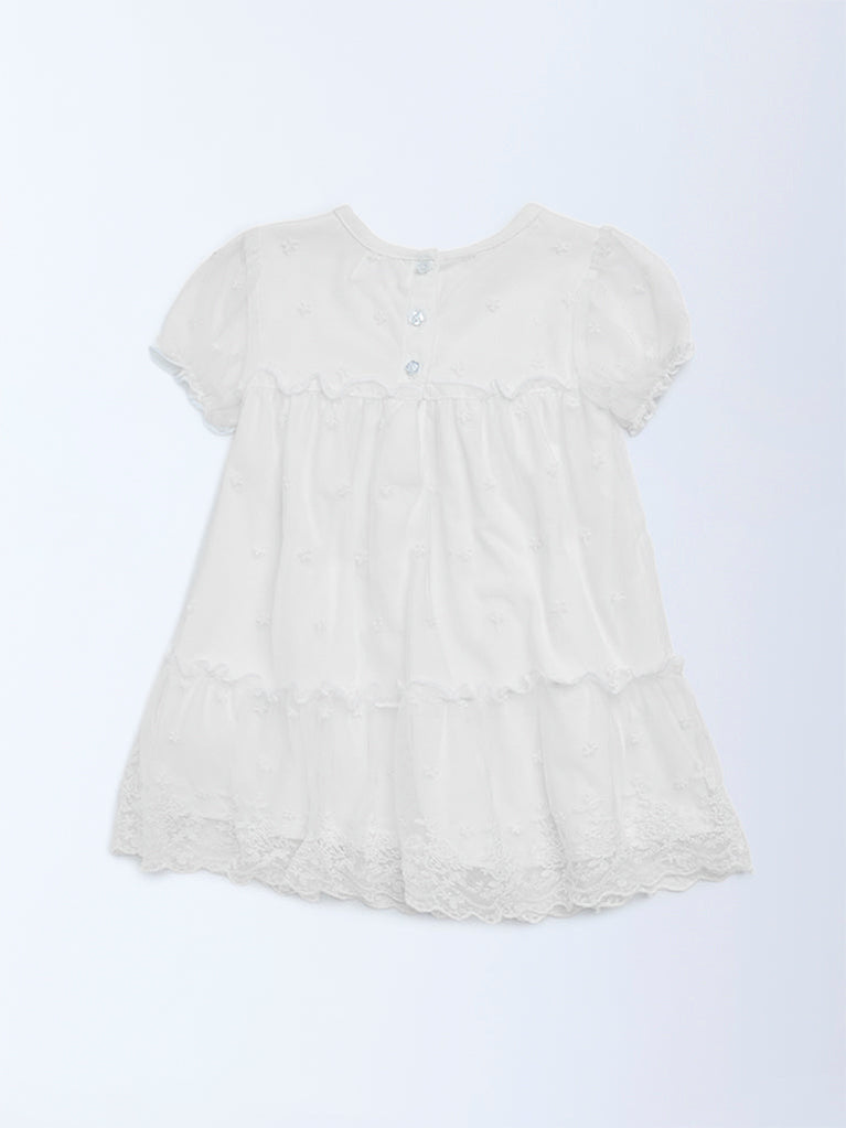 HOP Baby White Lace Detailed Tiered Dress