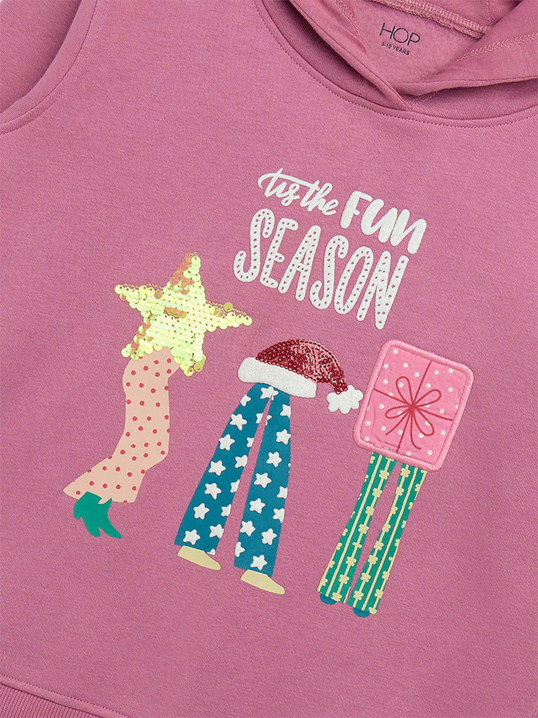HOP Kids Dusty Rose Christmas-Themed Cotton-Blend Hoodie