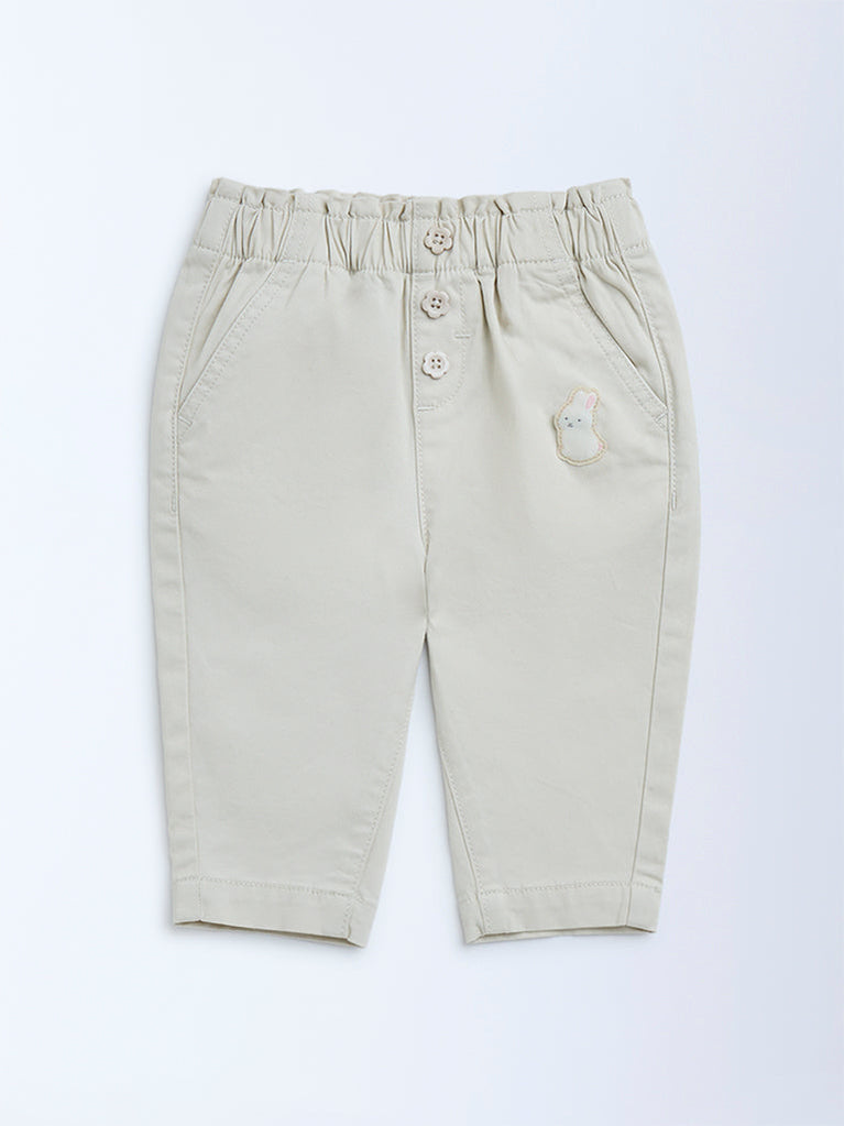 HOP Baby Beige High-Rise Cotton-Blend Pants