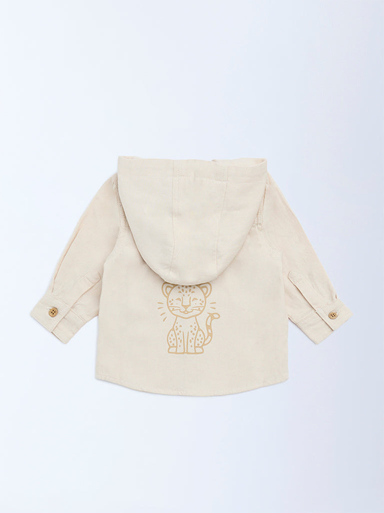 Bring a touch of fun to your little one’s wardrobe with this beige shirt from HOP Baby. Crafted from cotton-rich fabric, it features full sleeves, a functional hood and a button-up front for easy wear. Accented with animal prints on the front and back along with dual patch pockets, this piece combines comfort with an irresistibly playful look.