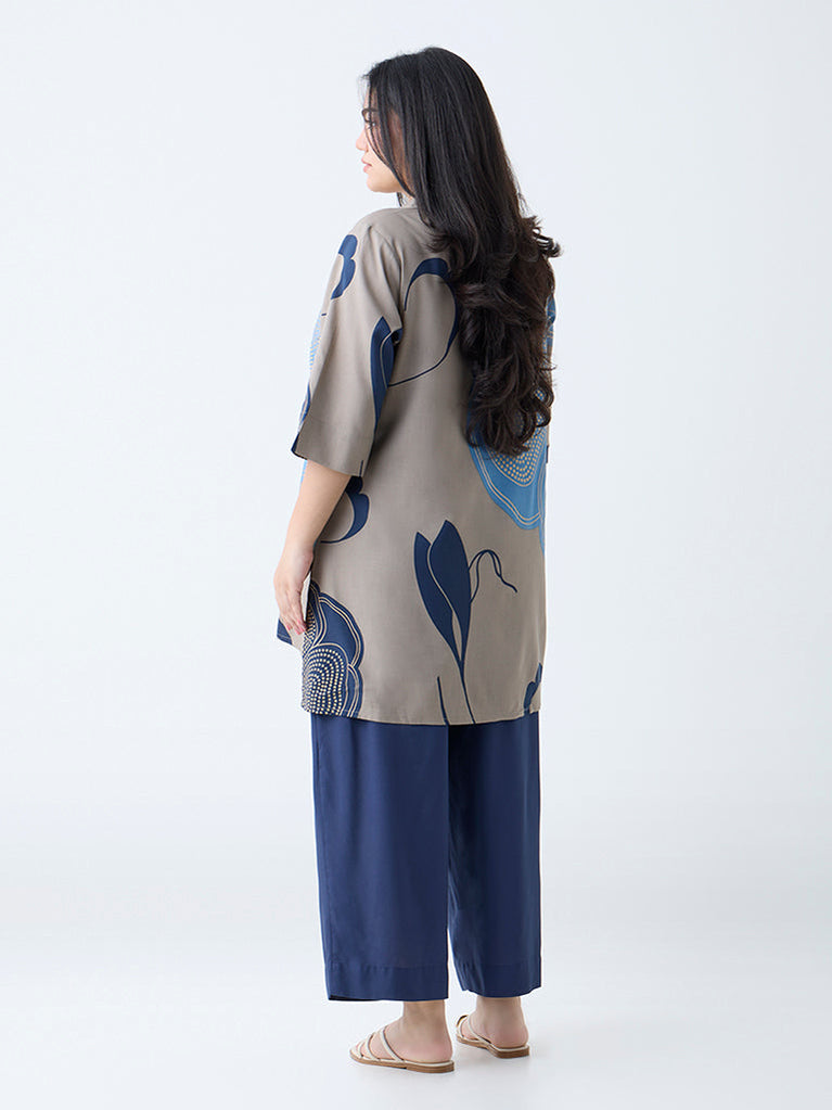 Diza Blue Botanical Printed High-Low Tunic