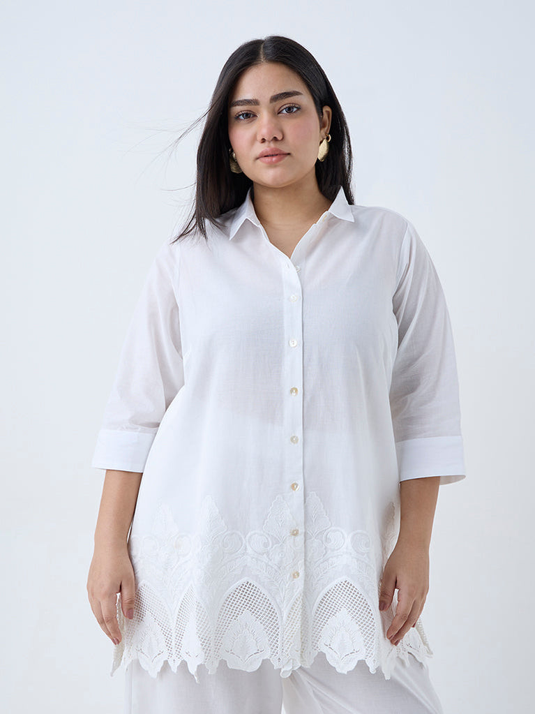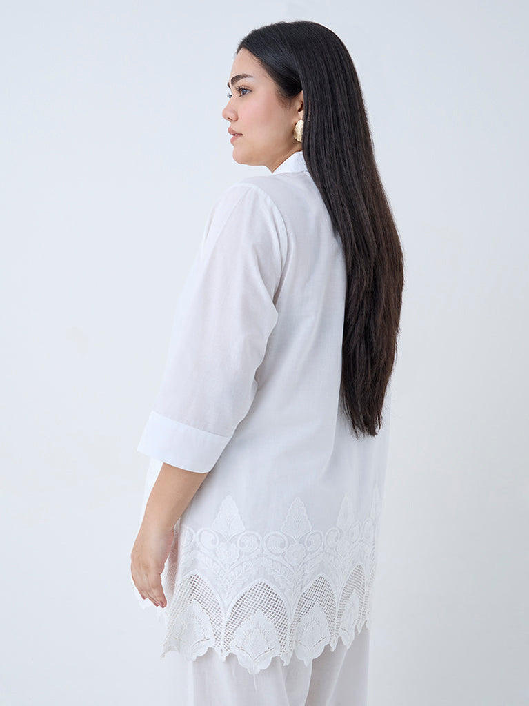 Diza White Floral Embroidered Ethnic Tunic