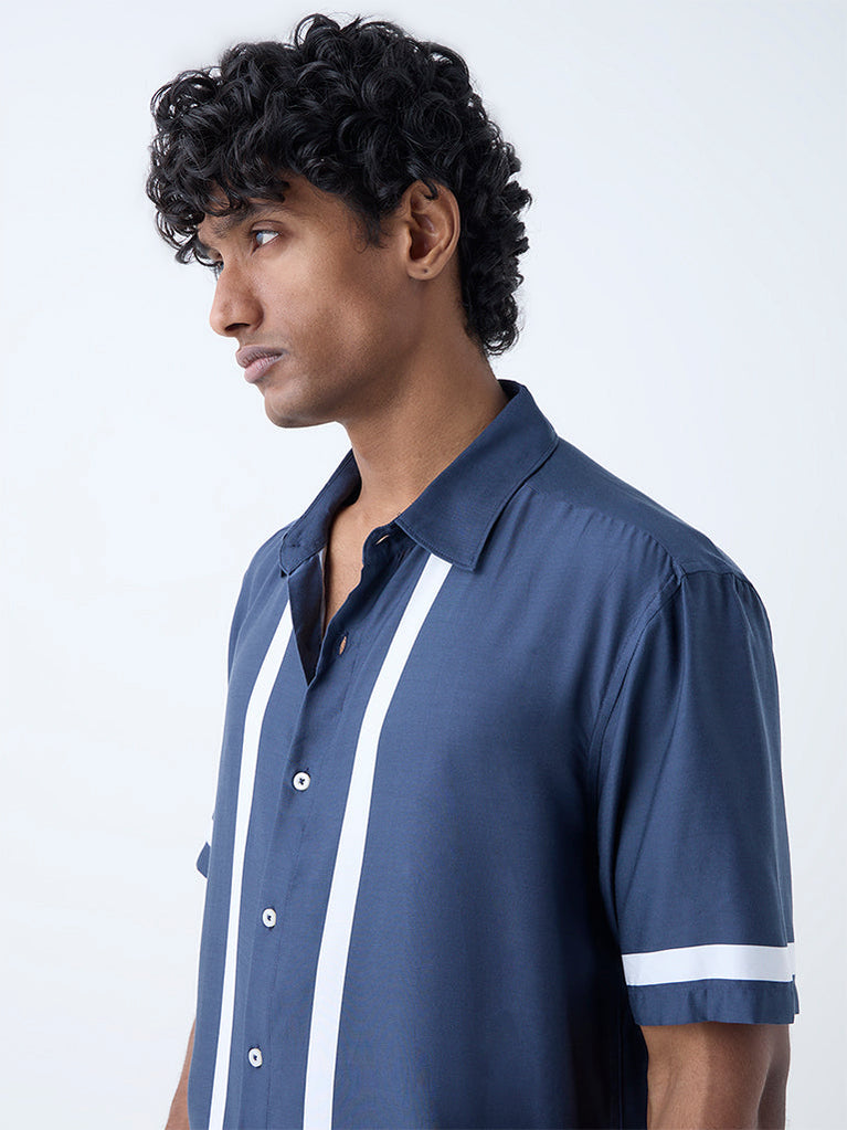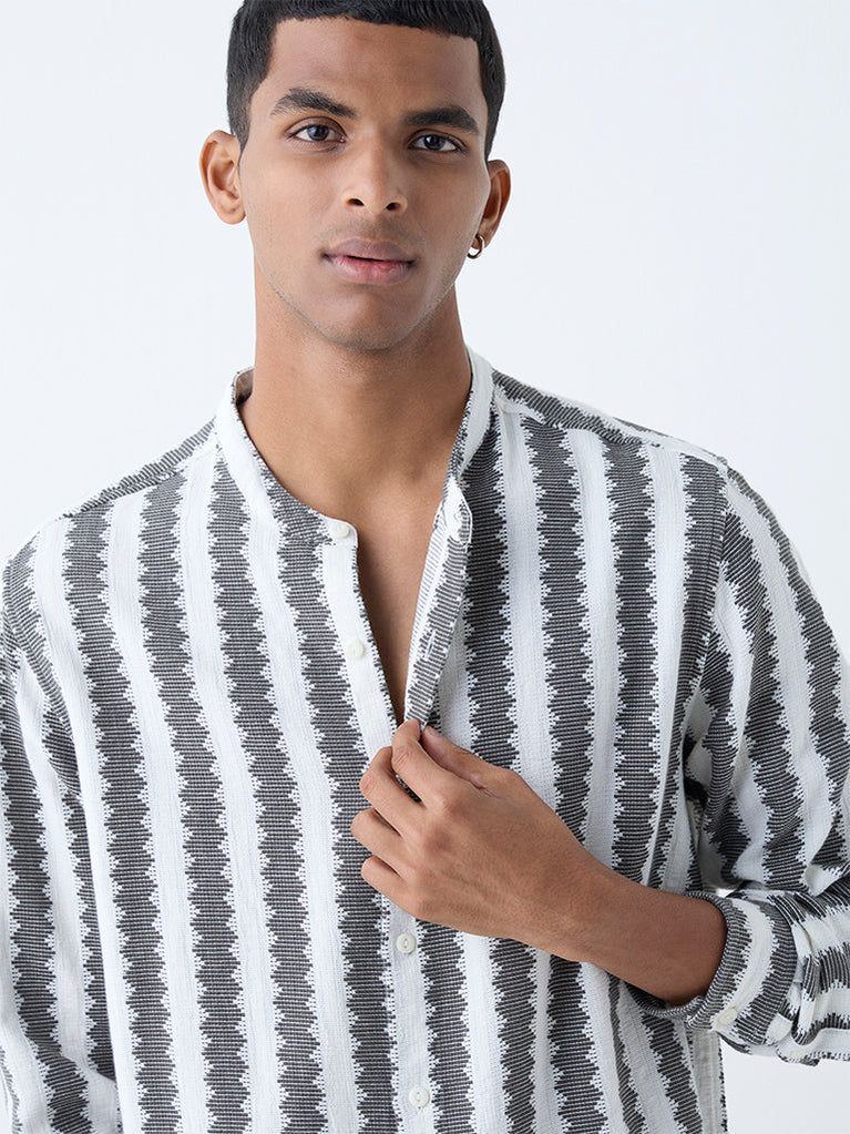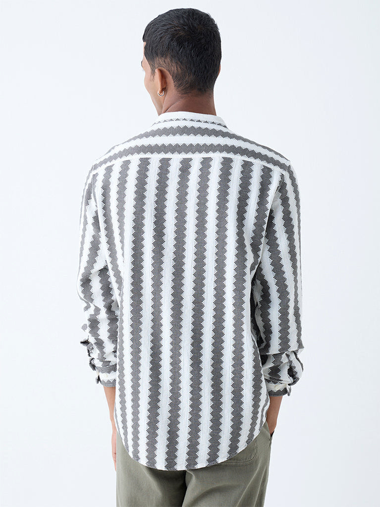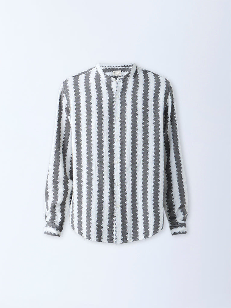 ETA Black Stripe Printed Relaxed-Fit Cotton Shirt