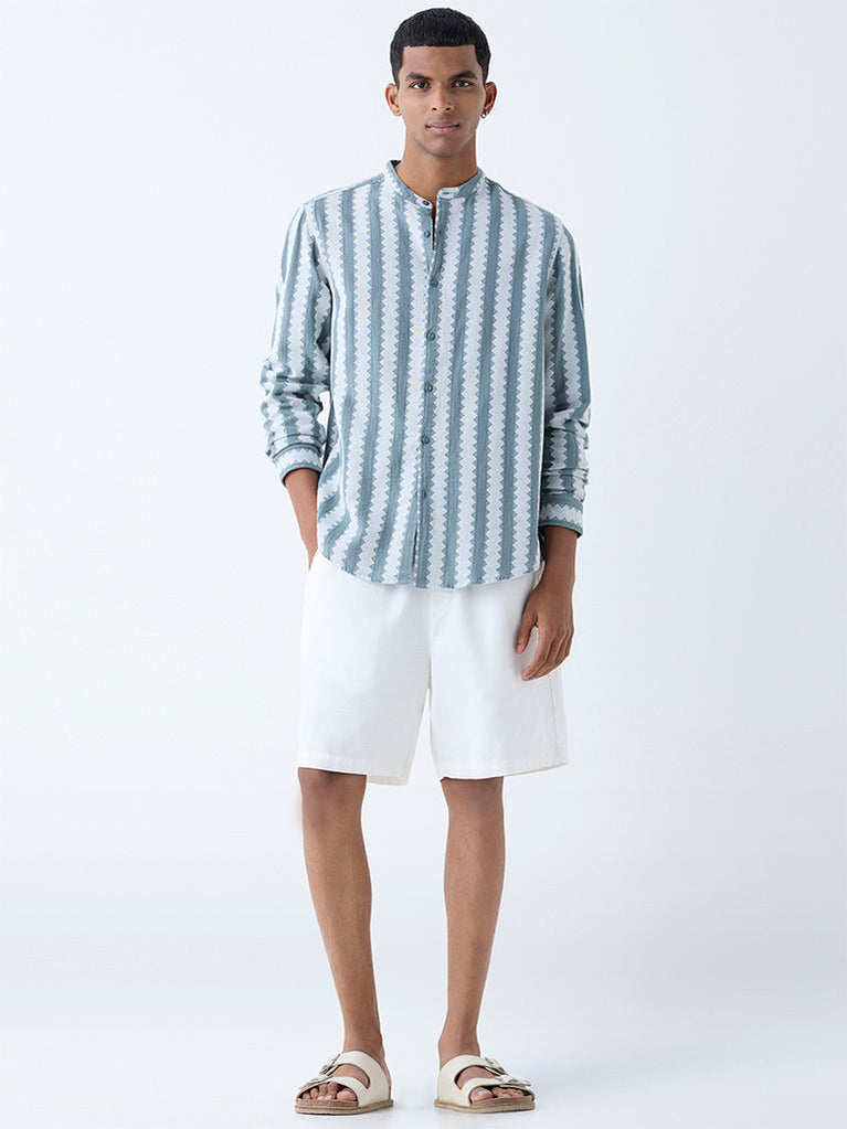 Ascot White Striped Relaxed-Fit Cotton Shirt
