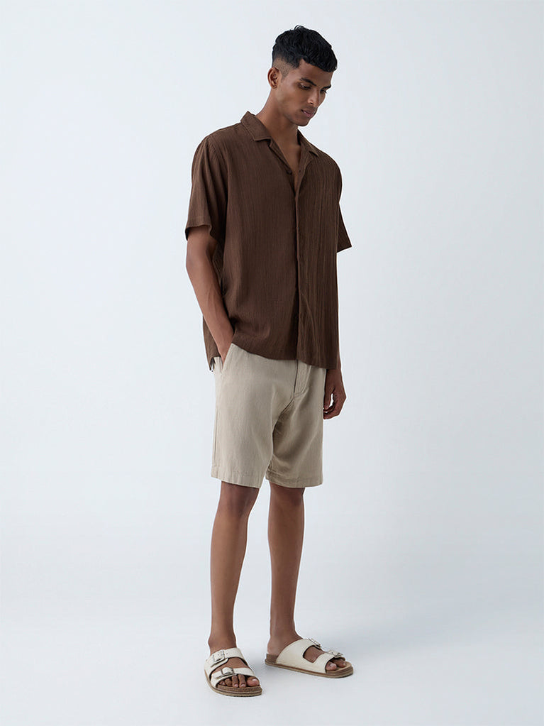 Ascot Beige Solid Relaxed-Fit Linen-Blend Shirt