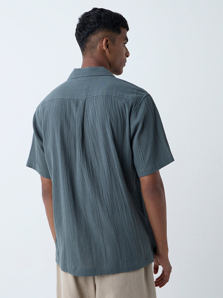 ETA Teal Crinkle-Textured Relaxed-Fit Cotton Shirt