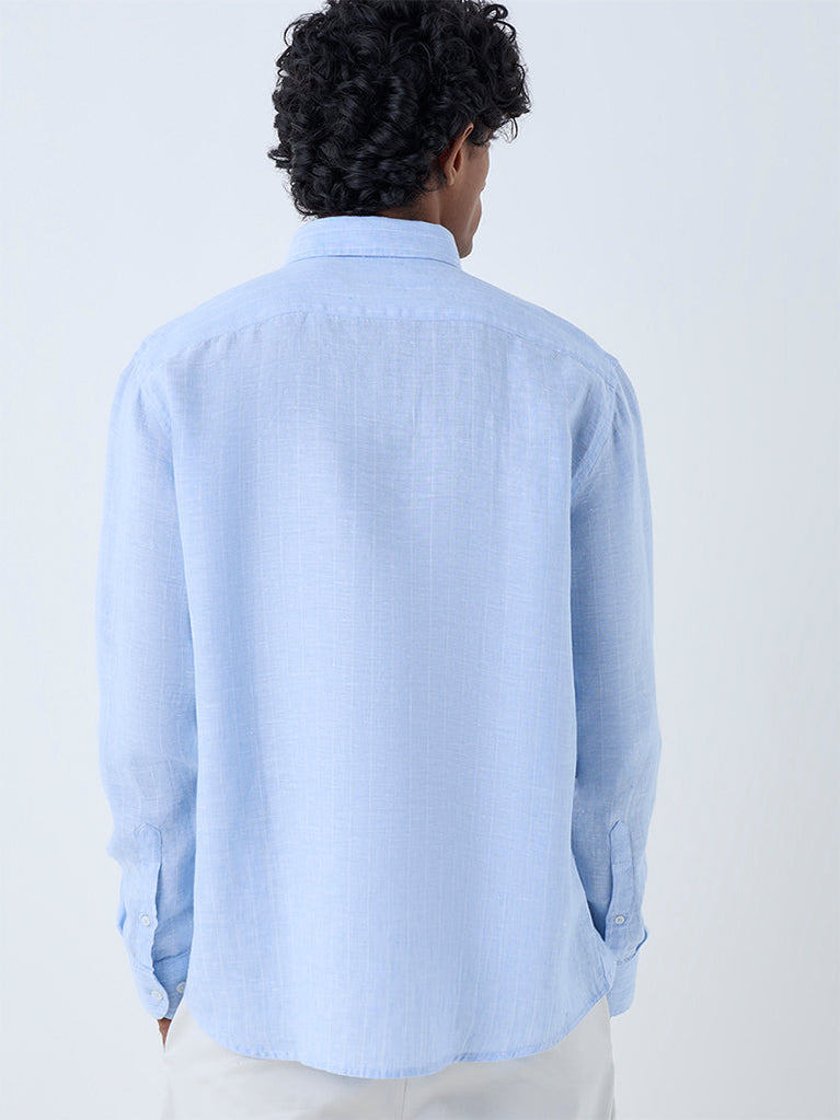 Rendered in a crisp blue hue, this linen shirt from Ascot blends relaxed tailoring with quiet luxury. Woven from a premium fabric, it’s finished with stripe motifs, a button-down collar, and full sleeves with buttoned cuffs. Ideal for refined, warm-weather dressing with a modern edge.