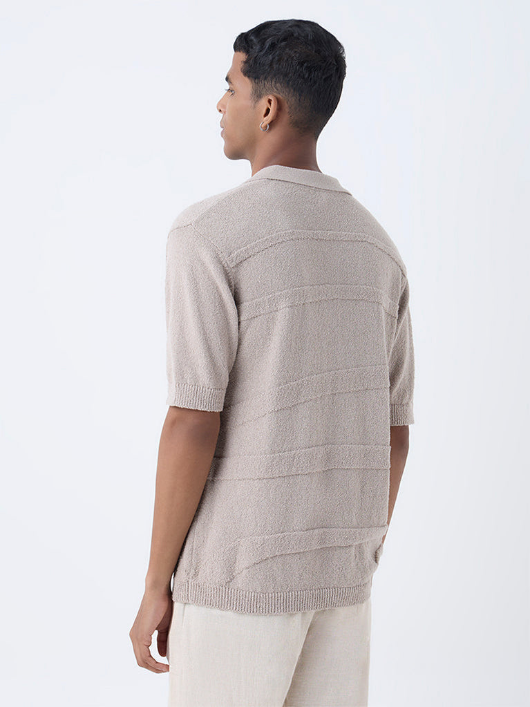 ETA Taupe Knit-Textured Relaxed-Fit Cotton Polo T-Shirt