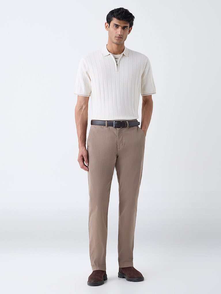 Ascot Beige Cable-Knit Relaxed-Fit Cotton Polo T-Shirt