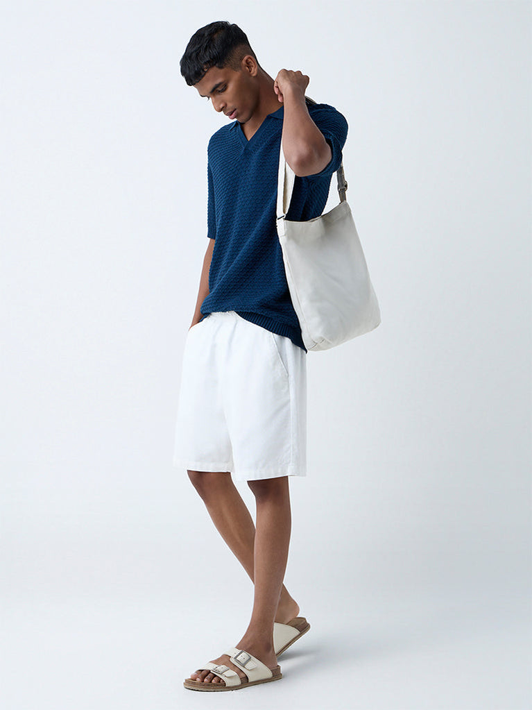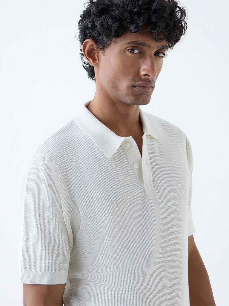 Ascot White Textured Relaxed-Fit Cotton-Blend Polo T-Shirt