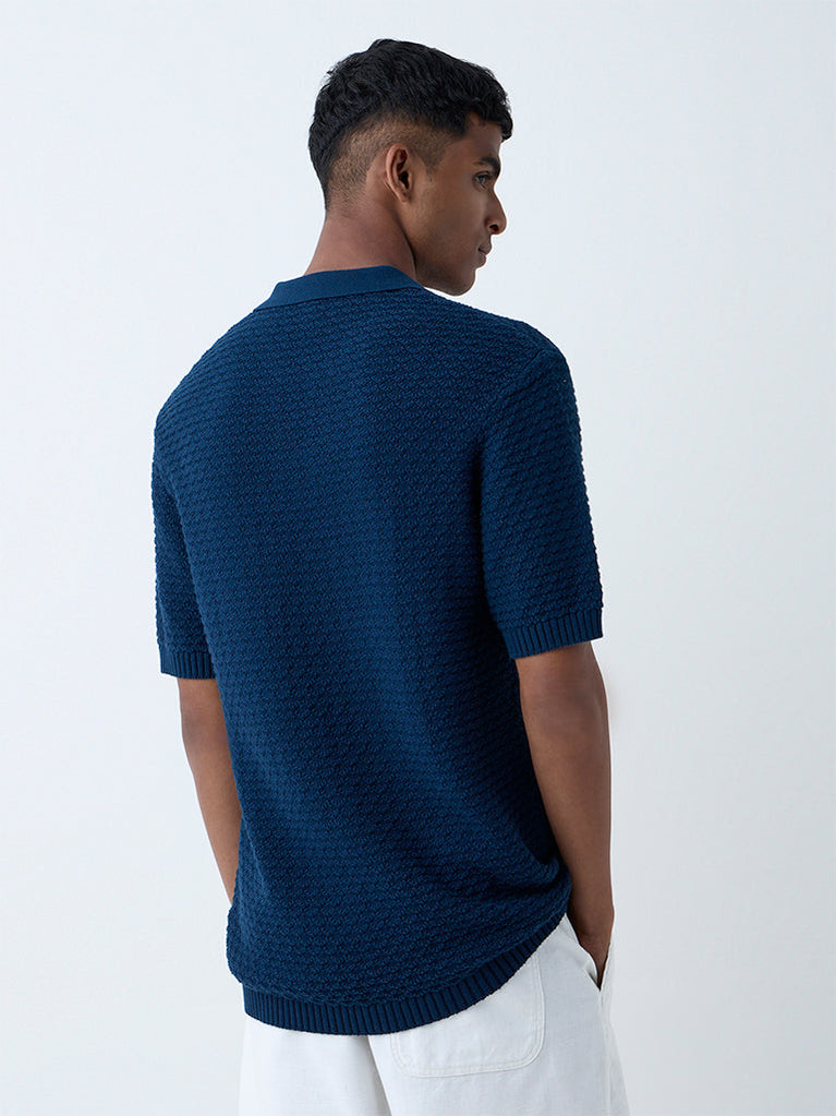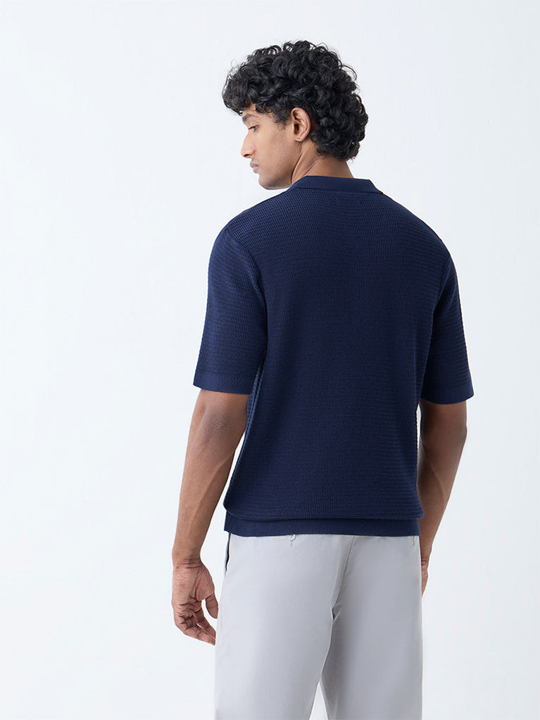 Ascot Navy Textured Relaxed-Fit Cotton-Blend Polo T-Shirt