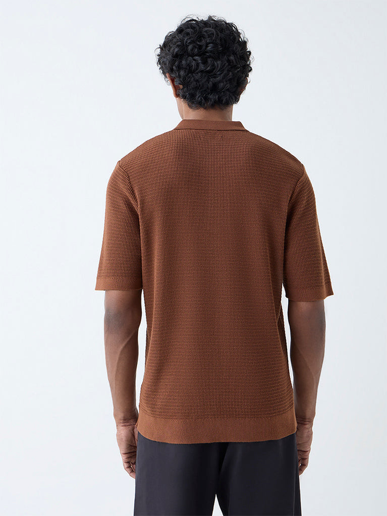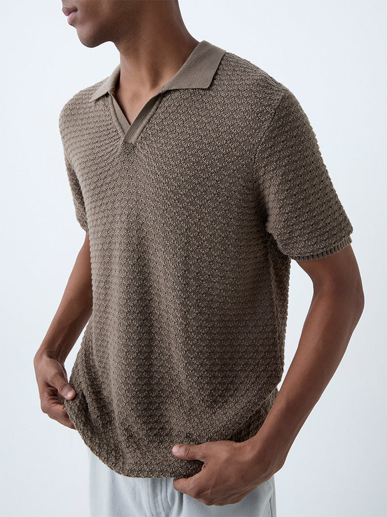 Ascot Brown Textured Relaxed-Fit Cotton-Blend Polo T-Shirt