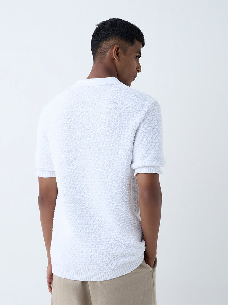 ETA White Knit-Textured Relaxed-Fit Cotton Polo T-Shirt