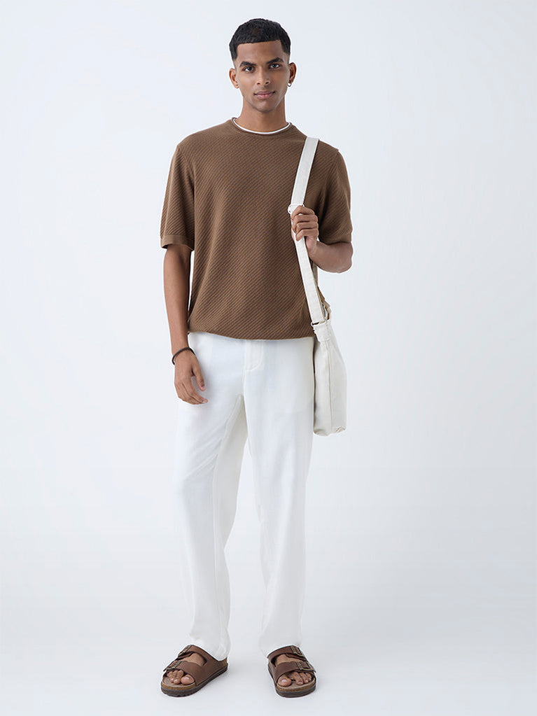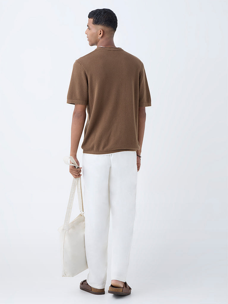 ETA Brown Knit-Textured Relaxed-Fit Cotton T-Shirt