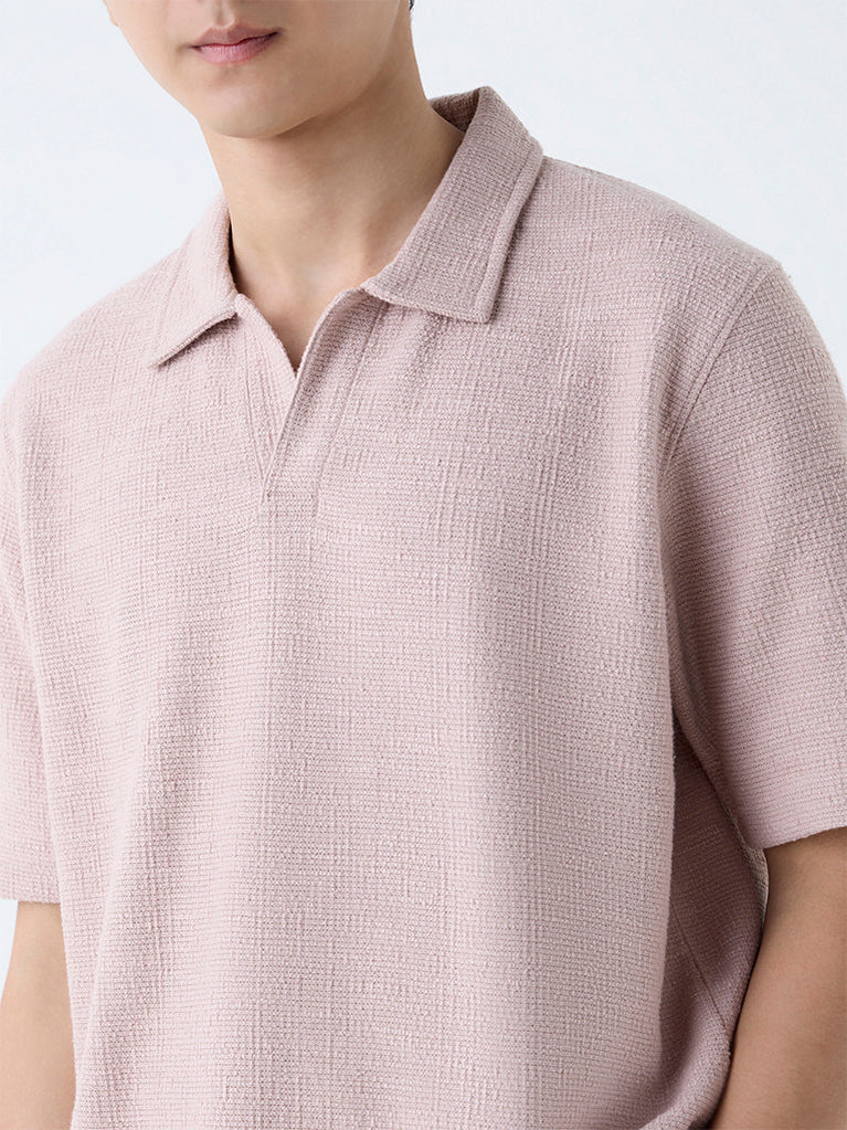 Amplify your casual rotation with this dusty pink t-shirt from ETA. Constructed from a premium cotton-blend fabric with a subtle textured finish, it is shaped in a relaxed silhouette a polo collar and short sleeves.