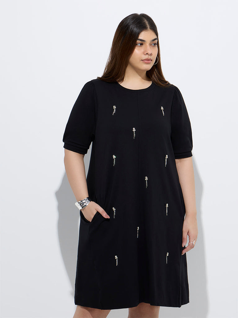 Gia Black Embellished Cotton A-Line Dress