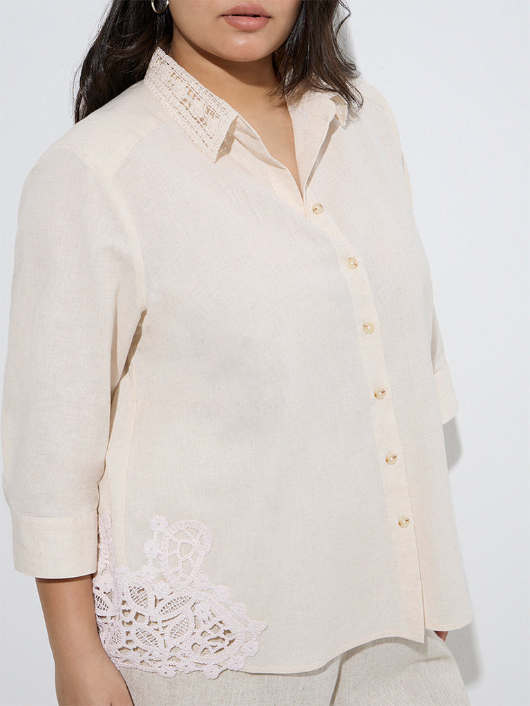 Gia Beige Lace-Detailed Cotton Shirt