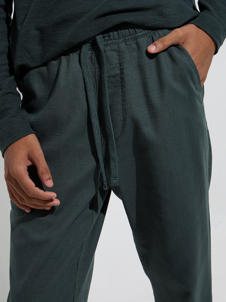 These dark green chinos from ETA bring laid-back polish to your wardrobe. Tailored in a relaxed fit from a breathable fabric, they feature an elasticated waistband with a drawstring fastening, offering the perfect blend of comfort and casual style.