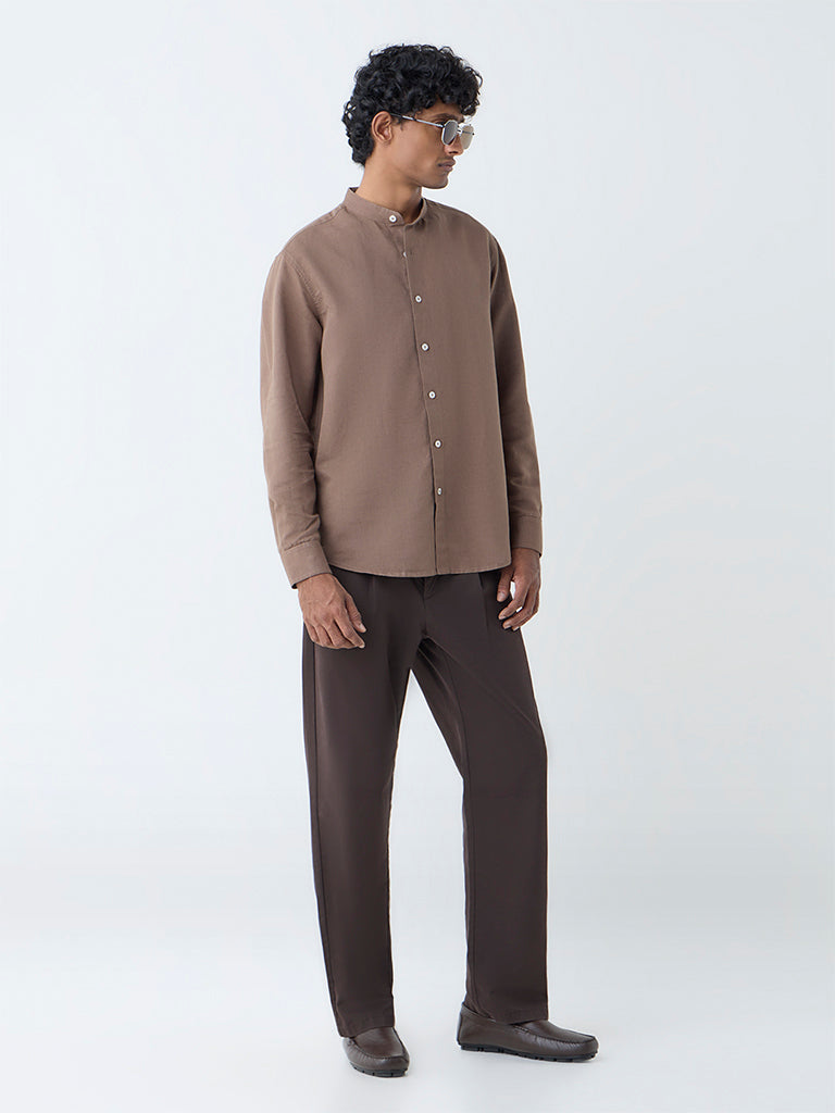 Ascot Brown Solid Relaxed-Fit Linen-Blend Shirt