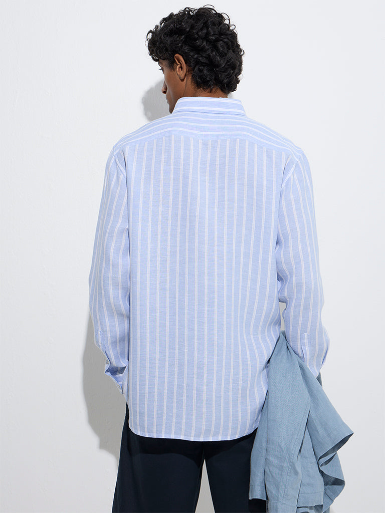 Ascot Light Blue Striped Relaxed-Fit Linen Shirt