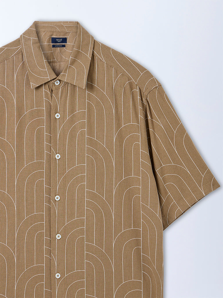 Ascot Light Brown Printed Relaxed Fit Linen Blend Shirt