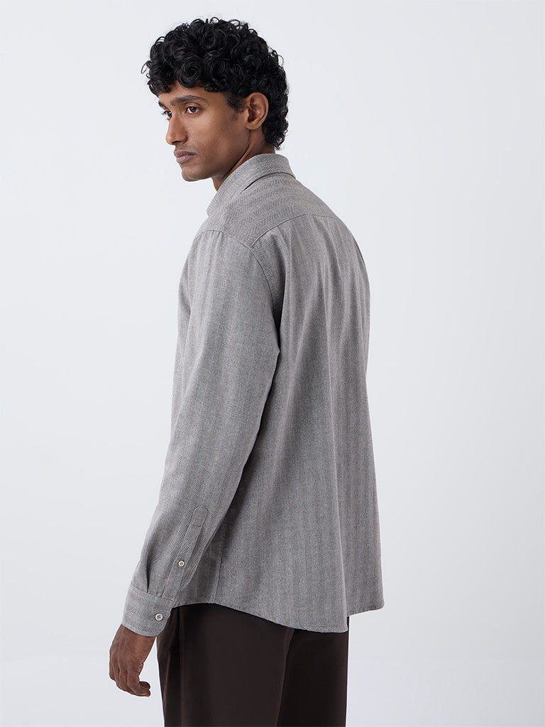 Ascot Taupe Chevron Printed Relaxed-Fit Cotton-Blend Shirt