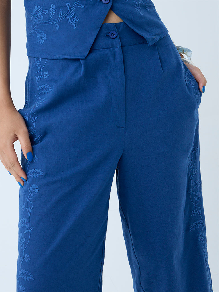Bombay Paisley Blue Floral Embroidered Cotton Pants
