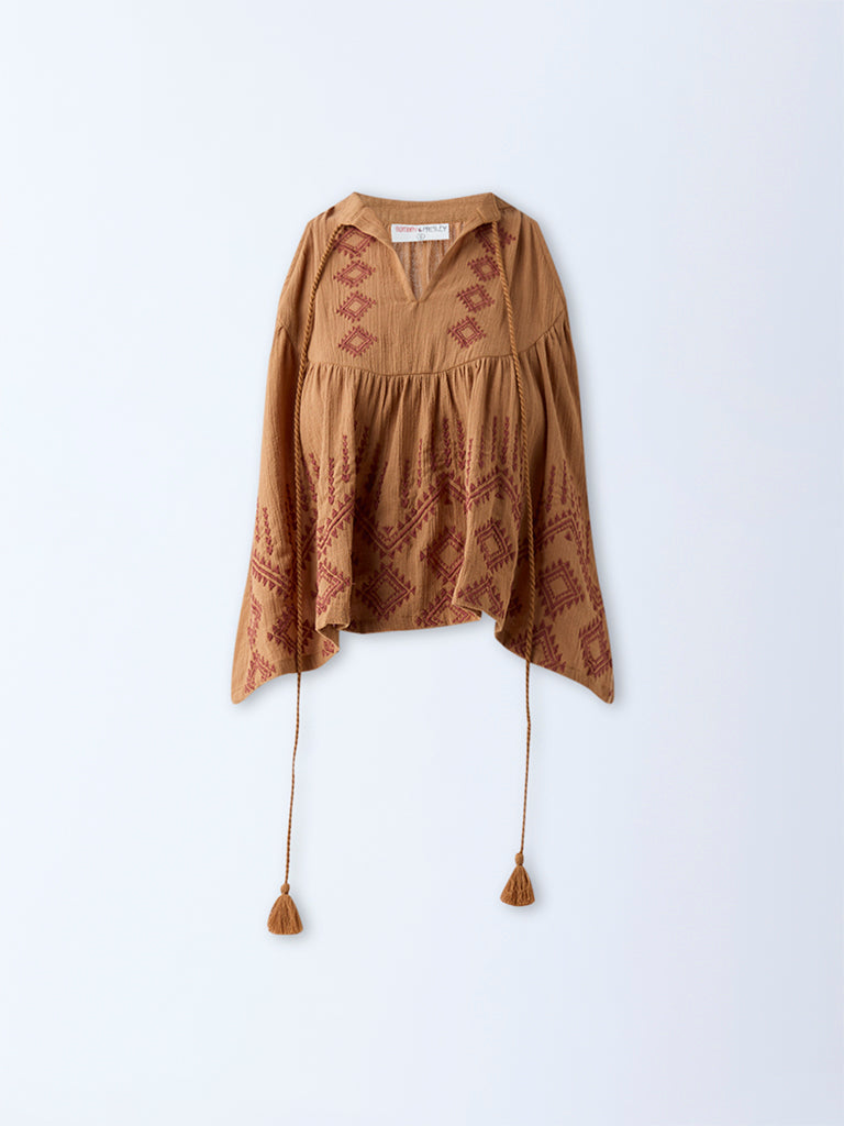 Bombay Paisley Mustard Embroidered Cotton Top