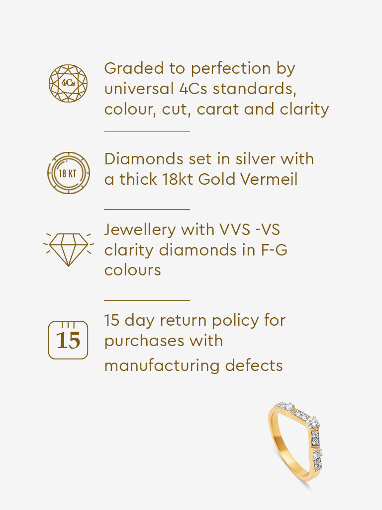A symbol of strength, direction, and style—this chevron ring from Westside X Pome is a modern classic. Sculpted in gold and detailed with shimmering lab-grown diamonds, it’s designed with clean, angular lines that speak to quiet confidence. Whether worn solo or stacked, it lends a sharp yet elegant accent to your ensemble. Ideal for those who love their jewellery to mean more and still go with everything.