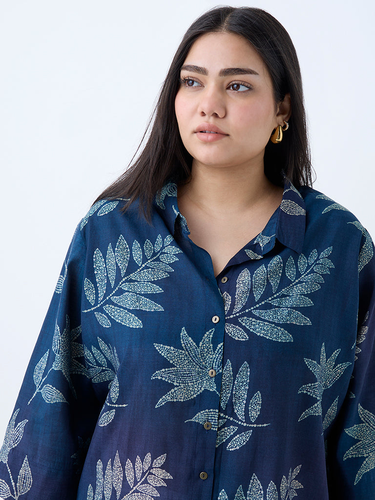 This indigo ethnic tunic from Diza is patterned with leaf prints throughout. Crafted from a breezy fabric, it features a neat collar, a button placket, and three-quarter sleeves for a versatile silhouette.