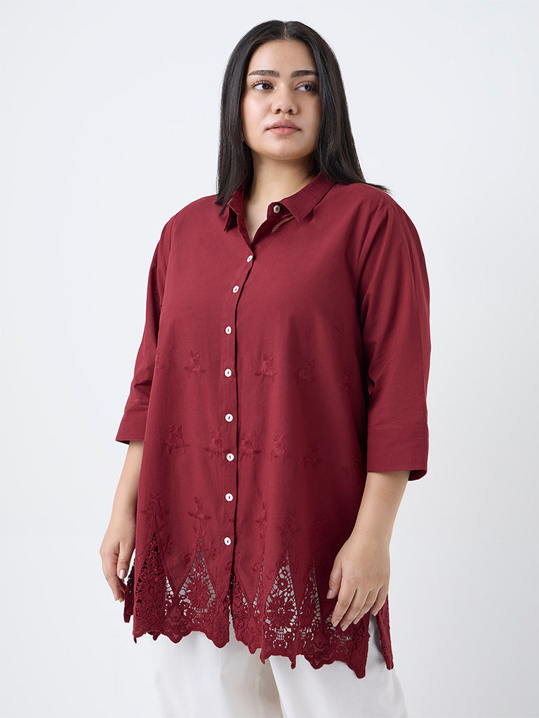 Diza Red Floral Lace Detailed Cotton Tunic