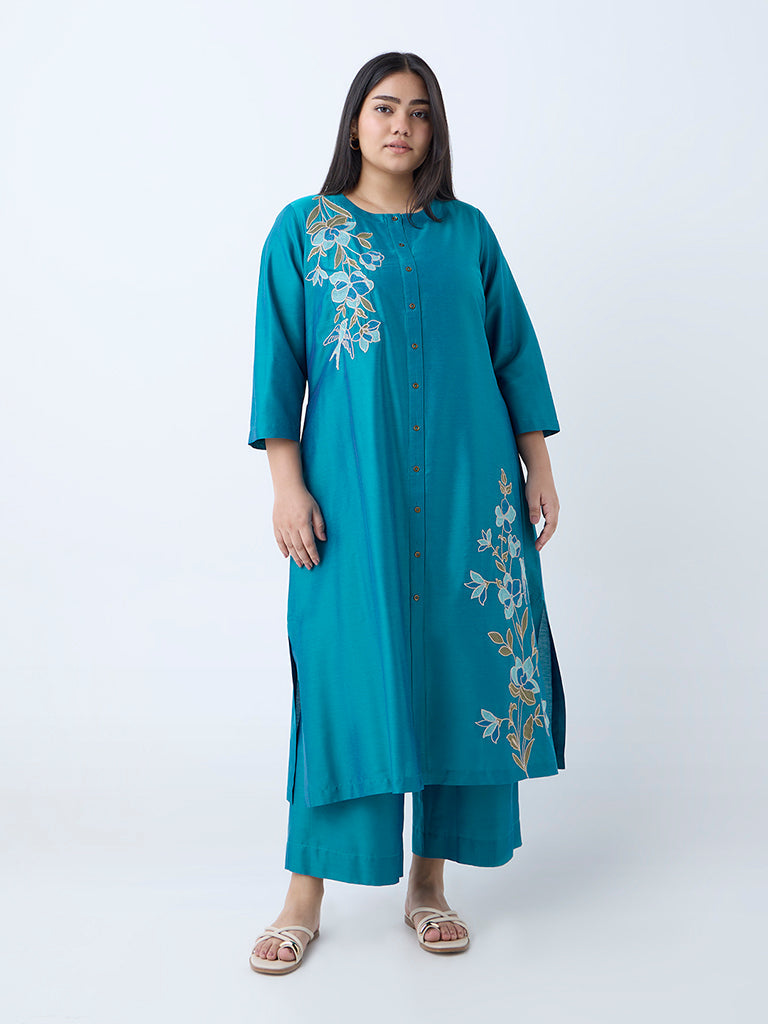 These teal ethnic pants from Diza are tailored from a breathable fabric that feels soft against the skin. The elasticated waistband with adjustable drawstrings ensures a secure fit, while the side pockets add functionality without disrupting the silhouette.