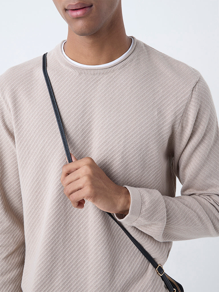 ETA Beige Textured Relaxed-Fit Cotton Sweater