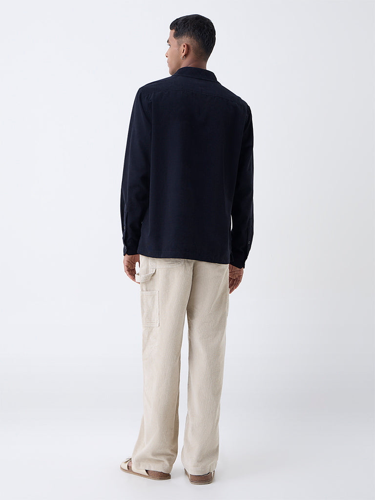 ETA Black Embroidered Relaxed-Fit Cotton Shirt