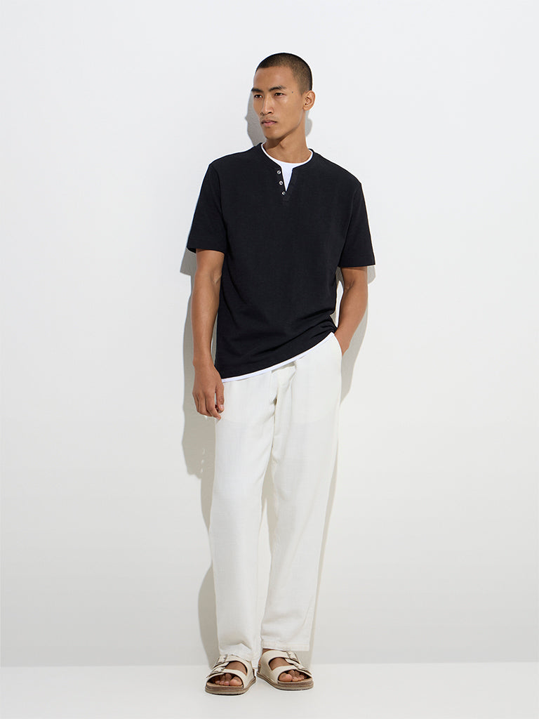 ETA Black Solid Slim-Fit Cotton T-Shirt