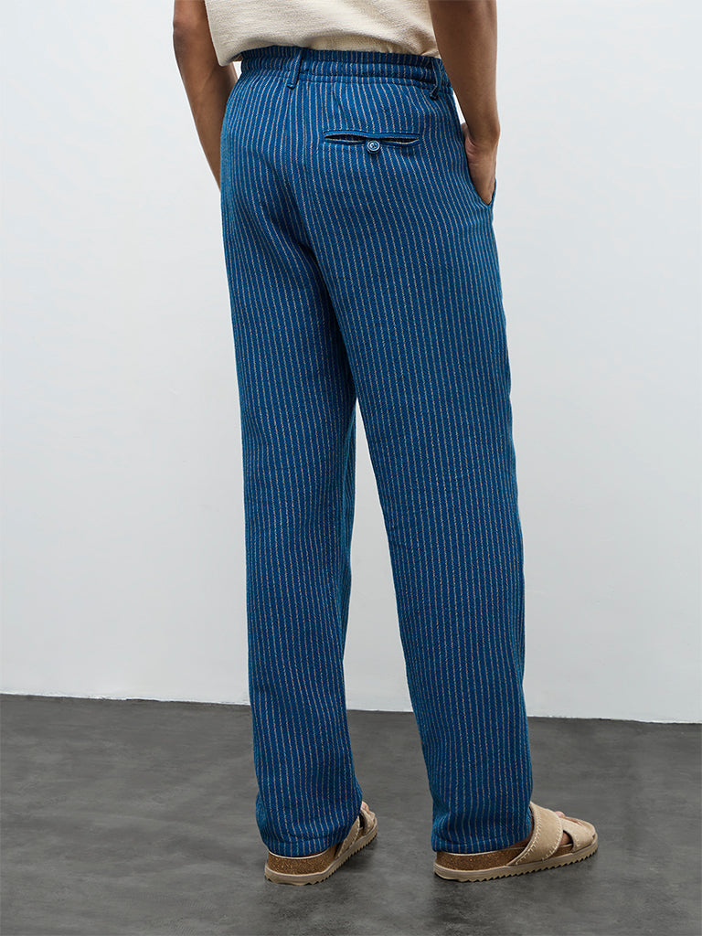 ETA Indigo Striped Relaxed-Fit Mid-Rise Cotton Chinos