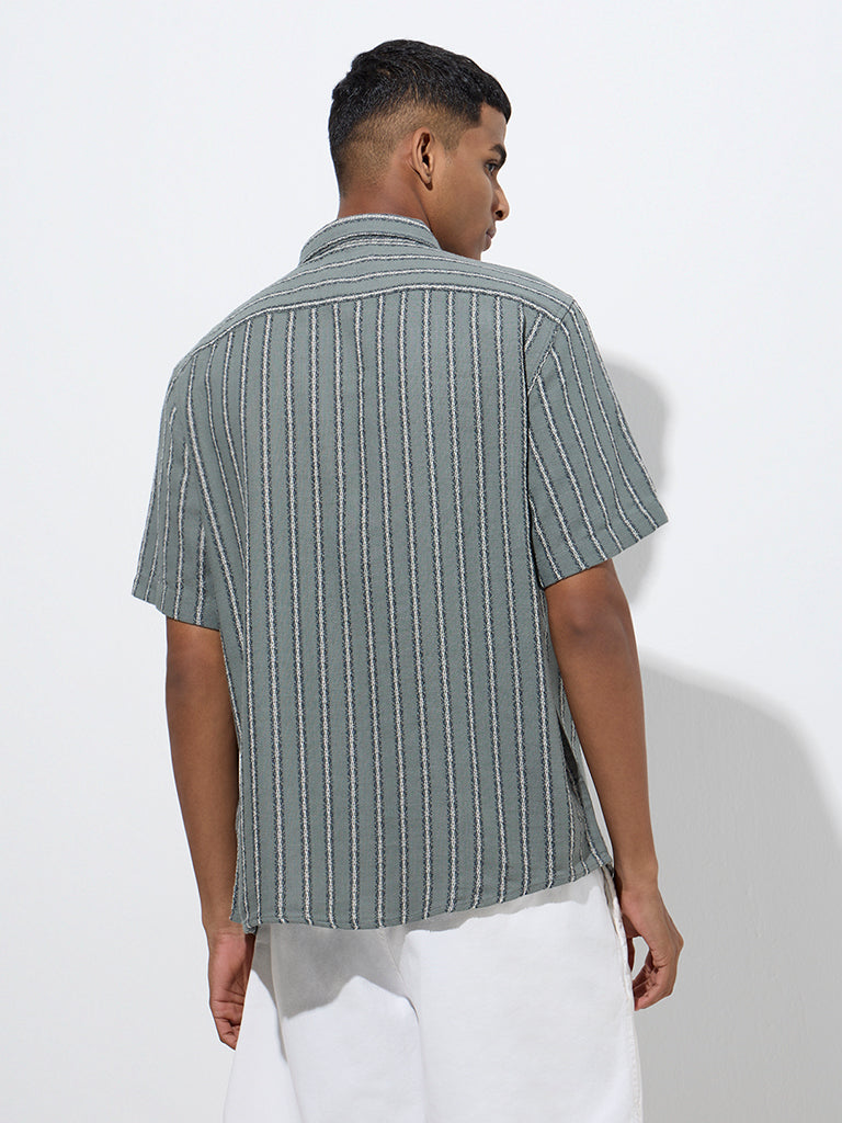 ETA Sage Stripe Printed Relaxed-Fit Cotton Shirt