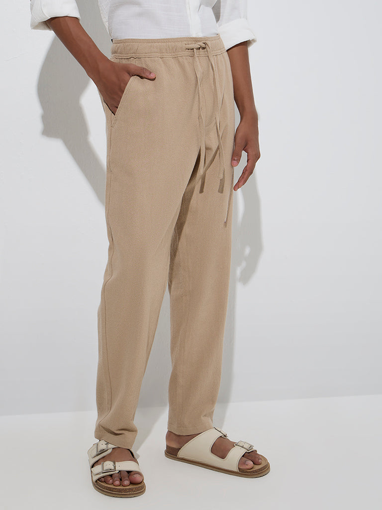 These taupe chinos from ETA redefine casual elegance with their relaxed fit. Milled from pure cotton for daily comfort, they’re designed with an elasticated waistband and drawstring fastening, making them a versatile staple for effortless style.