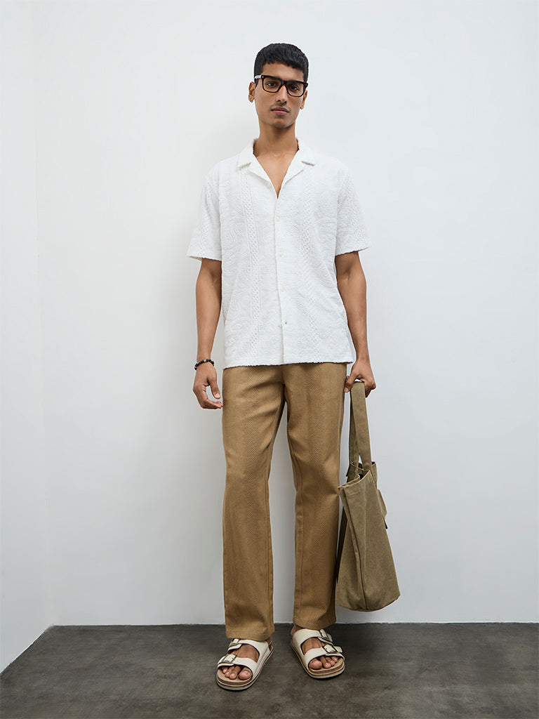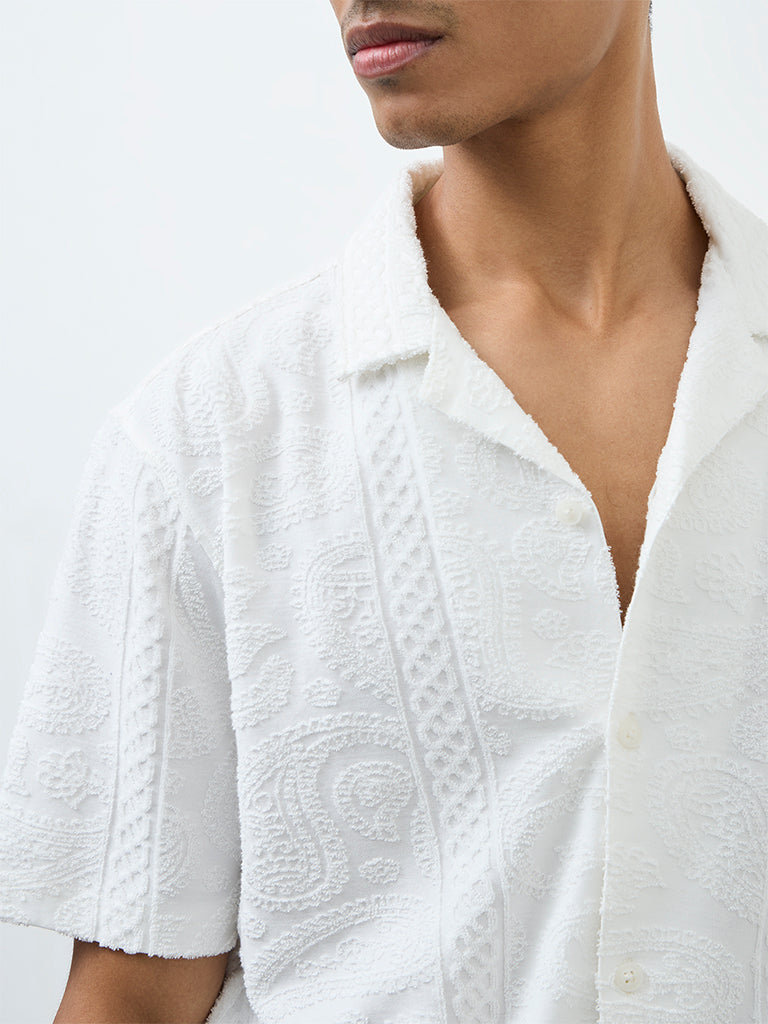 ETA White Paisley Textured Relaxed-Fit Cotton-Blend Shirt