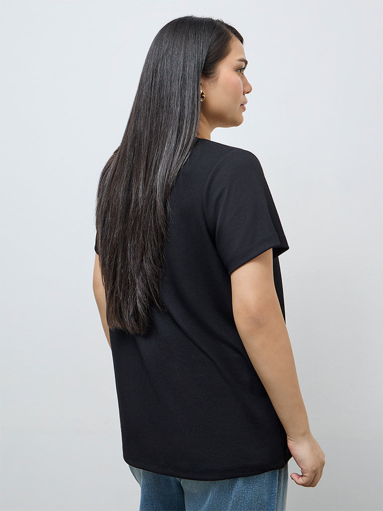 Keep it simple yet stylish with this black tee from Gia, crafted from a ribbed-textured fabric for added dimension. Finished with a classic crewneck and short sleeves, it’s an essential piece that anchors any off-duty look with ease.