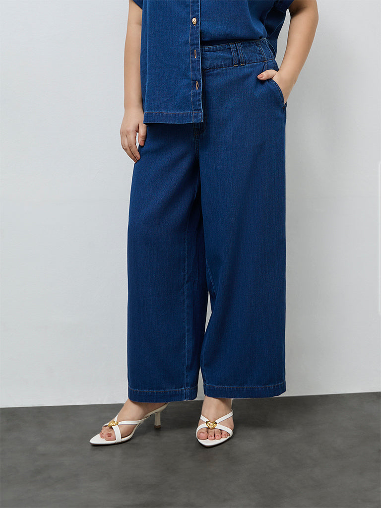 Gia Dark Blue Relaxed-Fit High-Rise Jeans
