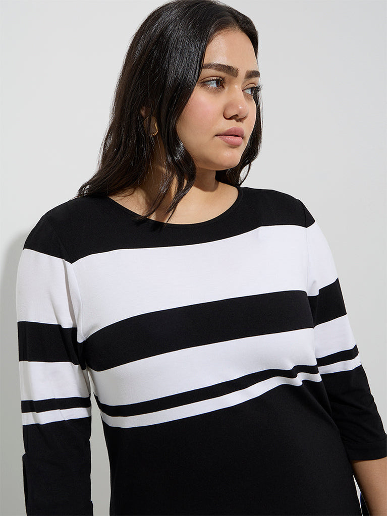 Step up your off-duty style with this black t-shirt from Gia, splashed with colour-blocked detailing that bring a modern edge. Made from pure cotton fabric that feels as good as it looks, it’s finished with a classic round neck and easy three-quarter sleeves.