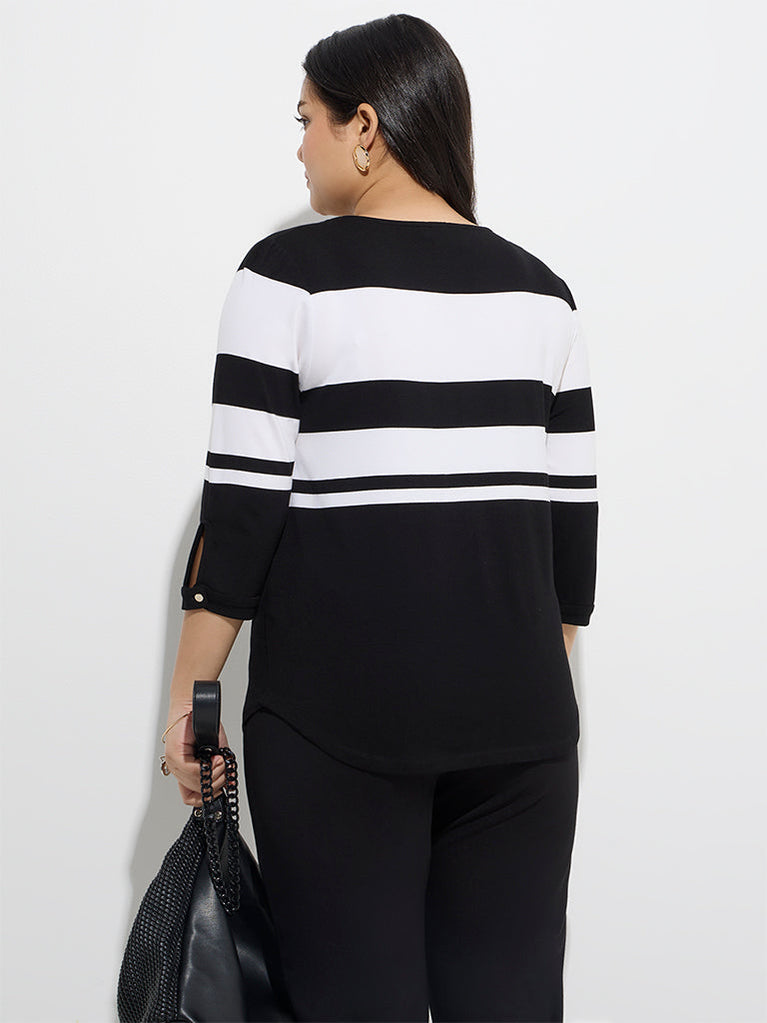 Ascot Black Striped Relaxed-Fit Cotton-Blend Polo T-Shirt