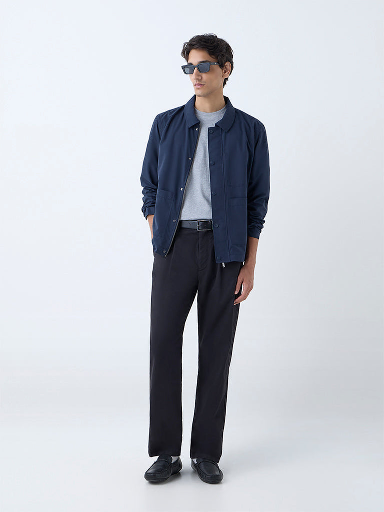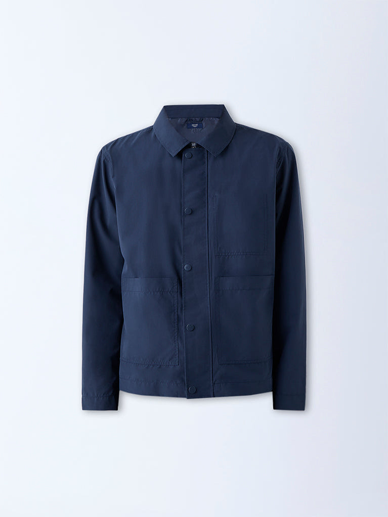 Ascot Navy Solid Relaxed-Fit Jacket