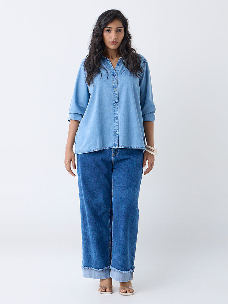 A wardrobe essential, this light blue denim shirt from Gia is cut from pure cotton for a soft, breathable feel. It features a collared, button-up front and three-quarter sleeves—an easy pairing with jeans or trousers for a laid-back yet polished look.