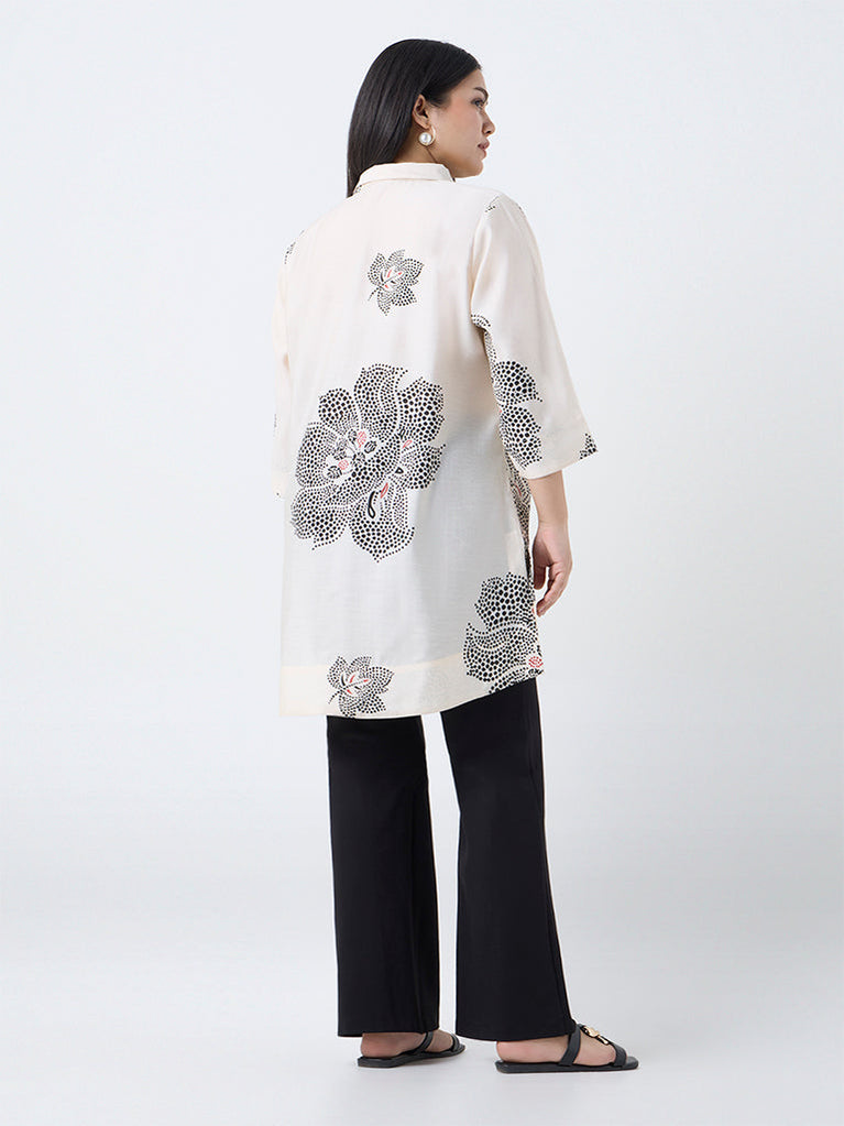 Diza Cream Floral Printed High-Low Tunic