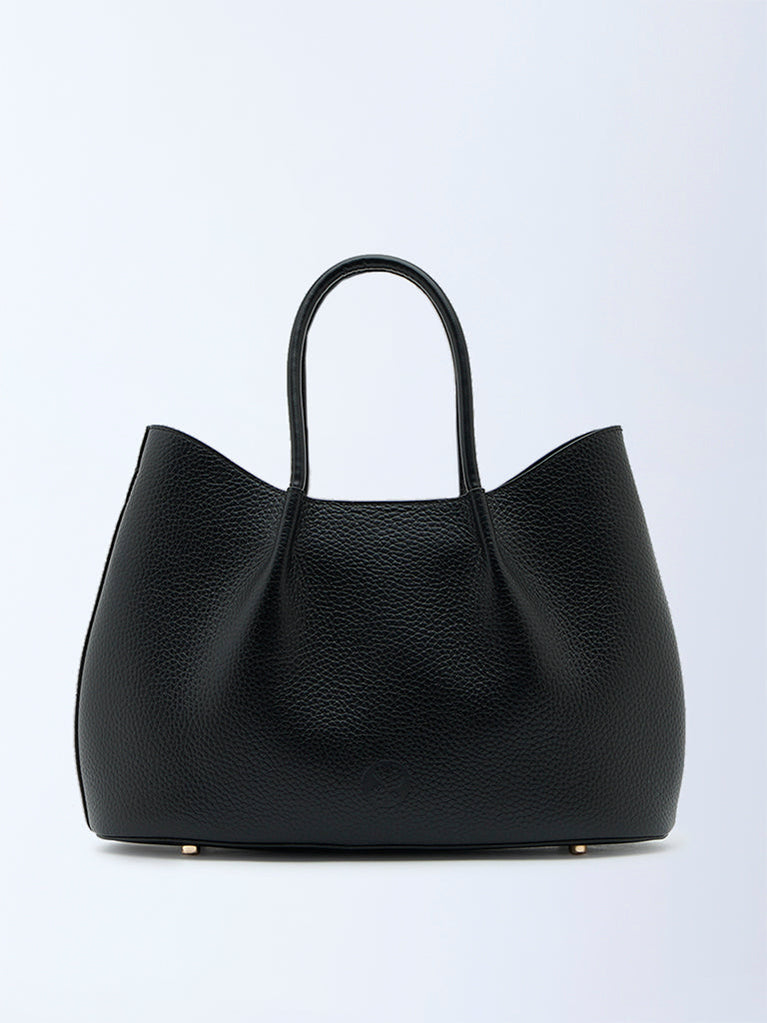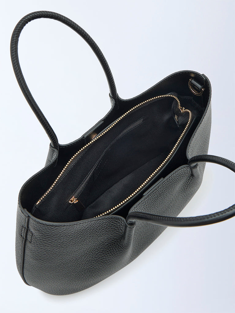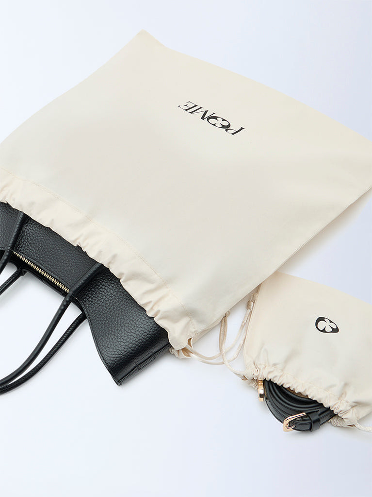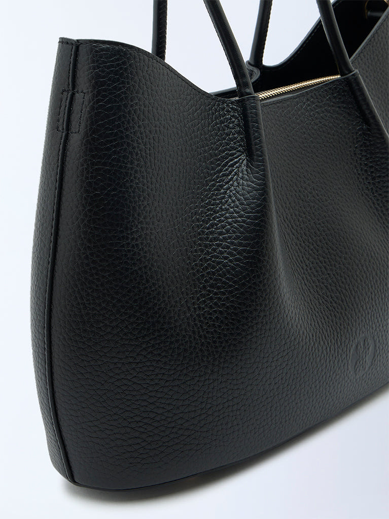 Details•Black grain leather•Quality lining•Detachable shoulder strap with pouch•Internal gold zip and slip pockets•Protective gold feet