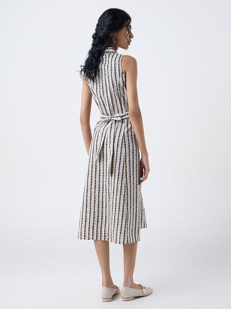 Bombay Paisley Off-White Cotton Shirt Dress with Belt