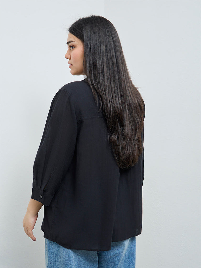 For moments when effortless refinement is key, this black blouse from Gia strikes the right balance. Designed with a sharp collared neck collar and 3/4th sleeves, it features dual chest pockets and a quarter button placket. Crafted from a breathable fabric, it delivers comfort with a polished finish.