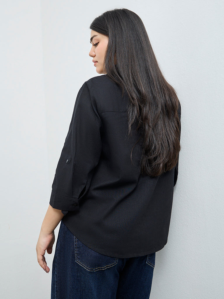 Gia Black Solid Cotton-Blend Blouse